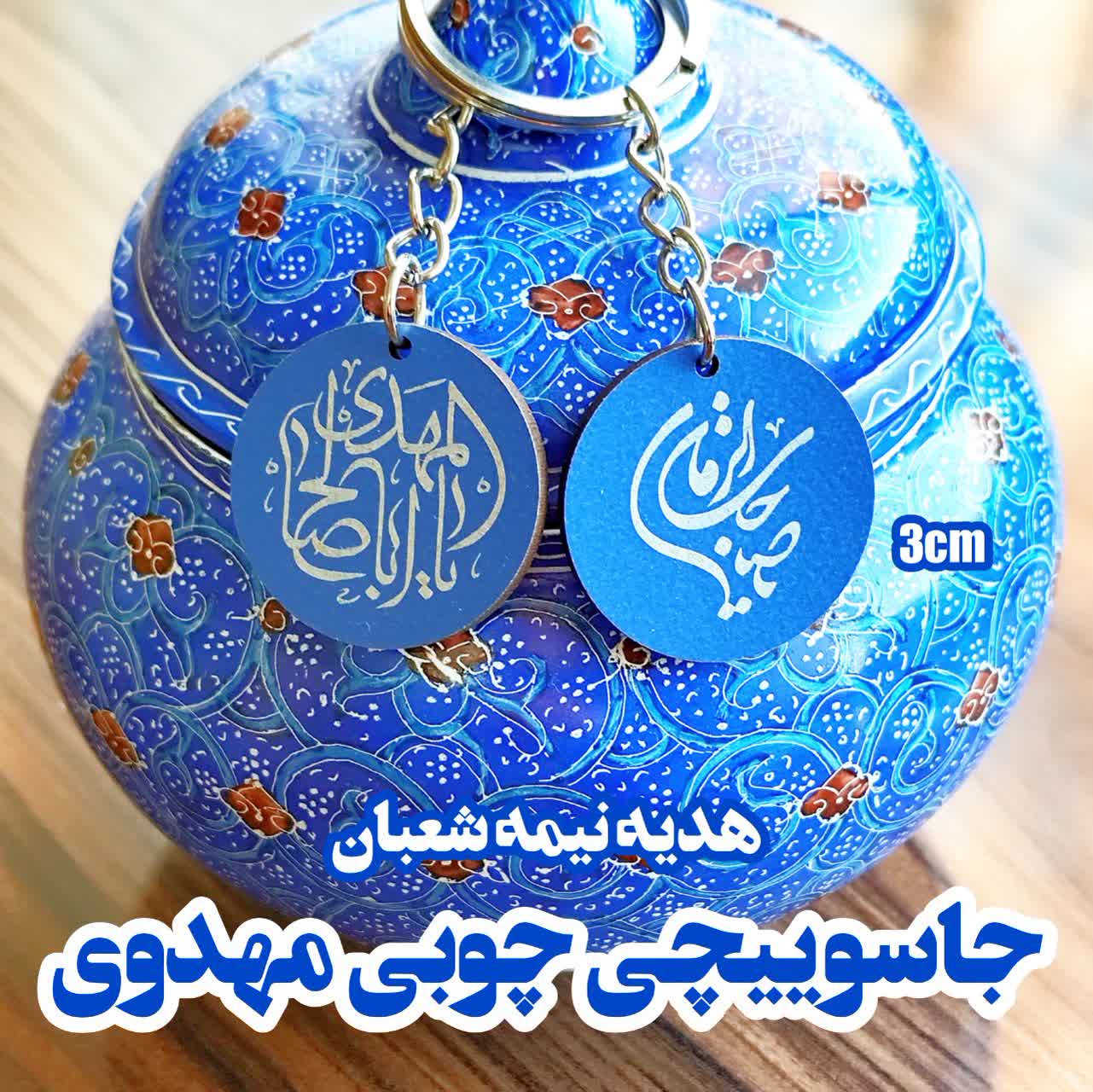 یادبود نیمه شعبان . خرید جاکلیدی سرکلیدی گرد چوبی نذر مهدوی