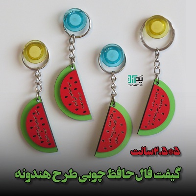 گیفت فال حافظ جاسوییچی طرح هندوانه فالدار. هم جاسوییچی هندونه + هم فال حافظ . گیفت شب یلدا . حک یک مصرع شعر (9 طرح مختلف ترکیبی) چوبی دو لایه